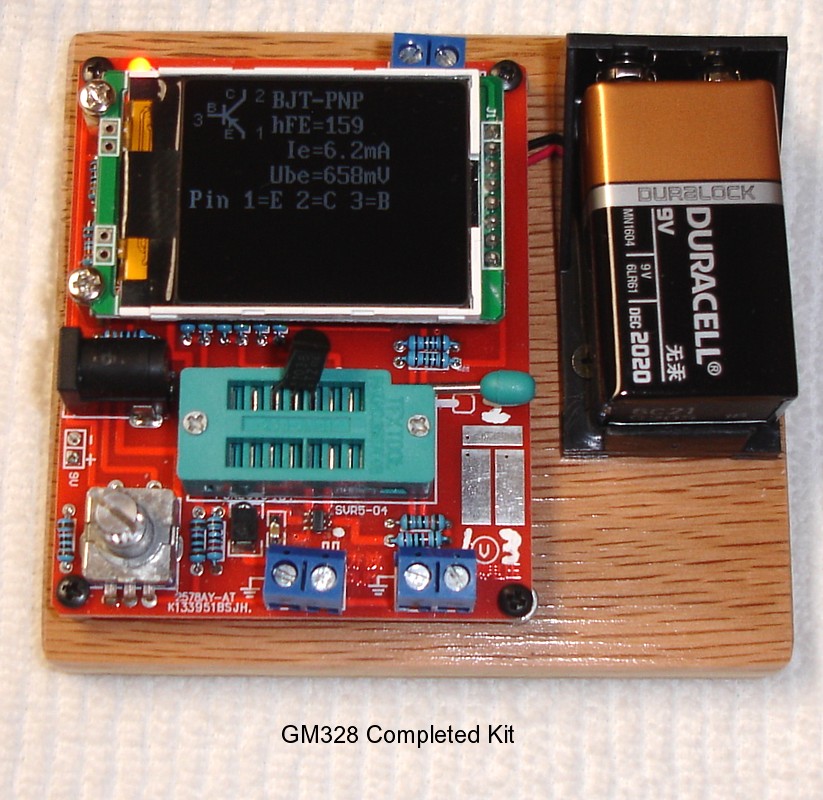 Caution: This is the kit where I could not get one to work, so I ordered a third. I swapped most of the parts out, but it would take 90 seconds before turning ON, then go straight into the calibration test. Parts swapped to an operable unit, still worked. So, it is still a mystery to me why such a simple circuit acts so weird. Nevertheless, I still recommend purchasing one (or two) of these for its amazing capabilities at low cost. Documentation is here: GM328 Transistor Tester Assembly and GM328 Transistor Tester Manual.